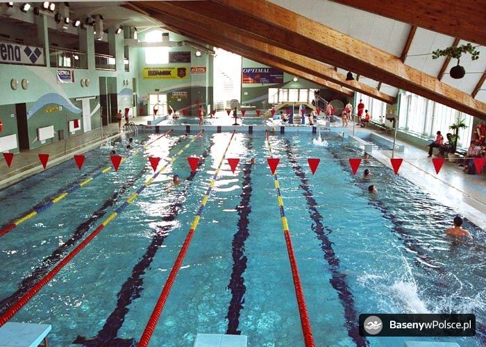 Kryta Pływalnia "DELFIN" posiada do dyspozycji klientów dwa baseny: sportowy o wymiarach 25 m x 12,5 m i zmiennej głębokości od 1,3 m do 1,8 m, 6 torów pływackich oraz rekreacyjny o wymiarach 12,5 m x 6 m i zmiennej głębokości od 0,5 m do 0,8 m, wyposażony w gejzery i bicze wodne, małą zjeżdżalnię dla dzieci typu "słonik".